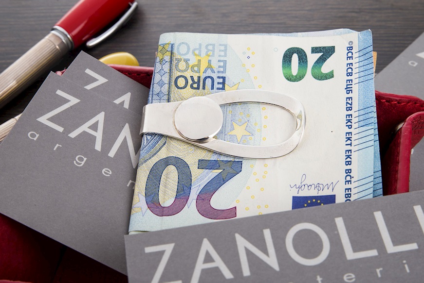 Silver money clip in the shape of a paper-clip with round. Article by Selezione Zanolli.