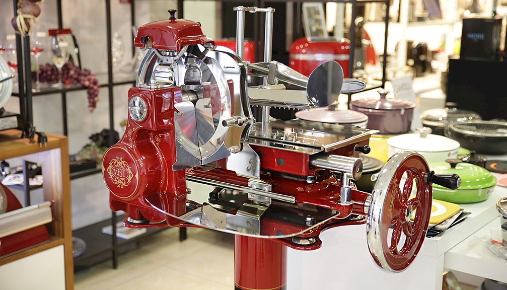 Affettatrice a volano B3 Fiorato acciaio colore rosso con decoro oro