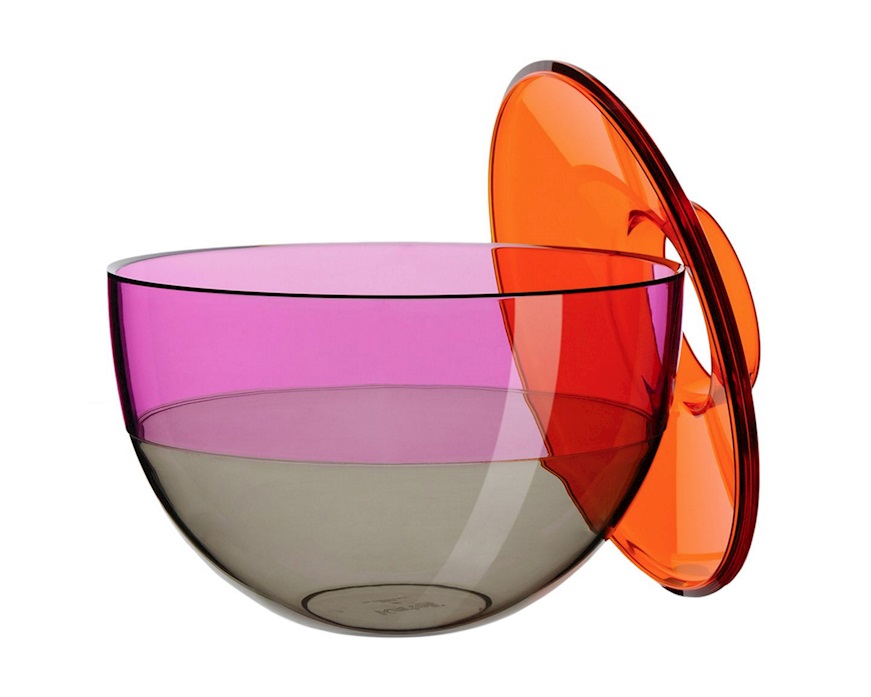 Con i vasi Shibuya di Christophe Pillet, Kartell fa un esperimento unico al mondo: rendere la plastica “preziosa”, ricca e corposa, come se fosse vetro soffiato di Murano. I vasi Shibuya hanno un coperchio forato, tolto il quale possono tranquillamente diventare accessori per la tavola e non più solo oggetti decorativi. Al di là della loro poli-funzionalità, la particolarità di questo progetto è data dal fatto che il vaso presenta due fasce colorate senza alcuna interruzione della superficie del materiale, in grado di garantire una perfetta tenuta dell’acqua. Il colore è protagonista nel progetto: la sua intensità e profondità, unita alla corposità del materiale plastico, rende questo oggetto particolarmente prezioso anche se realizzato su scala industriale e con un prezzo industriale.